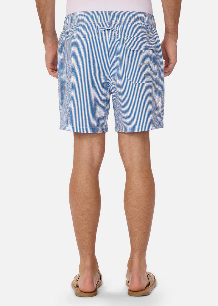 Make a splash with The Coressia Swim Trunk. Featuring a textured stripe pattern, these trunks offer a distinctive look and a lightweight, comfortable fit. Perfect for the beach or pool, they combine style and practicality, ensuring you stay cool and effortlessly stylish.